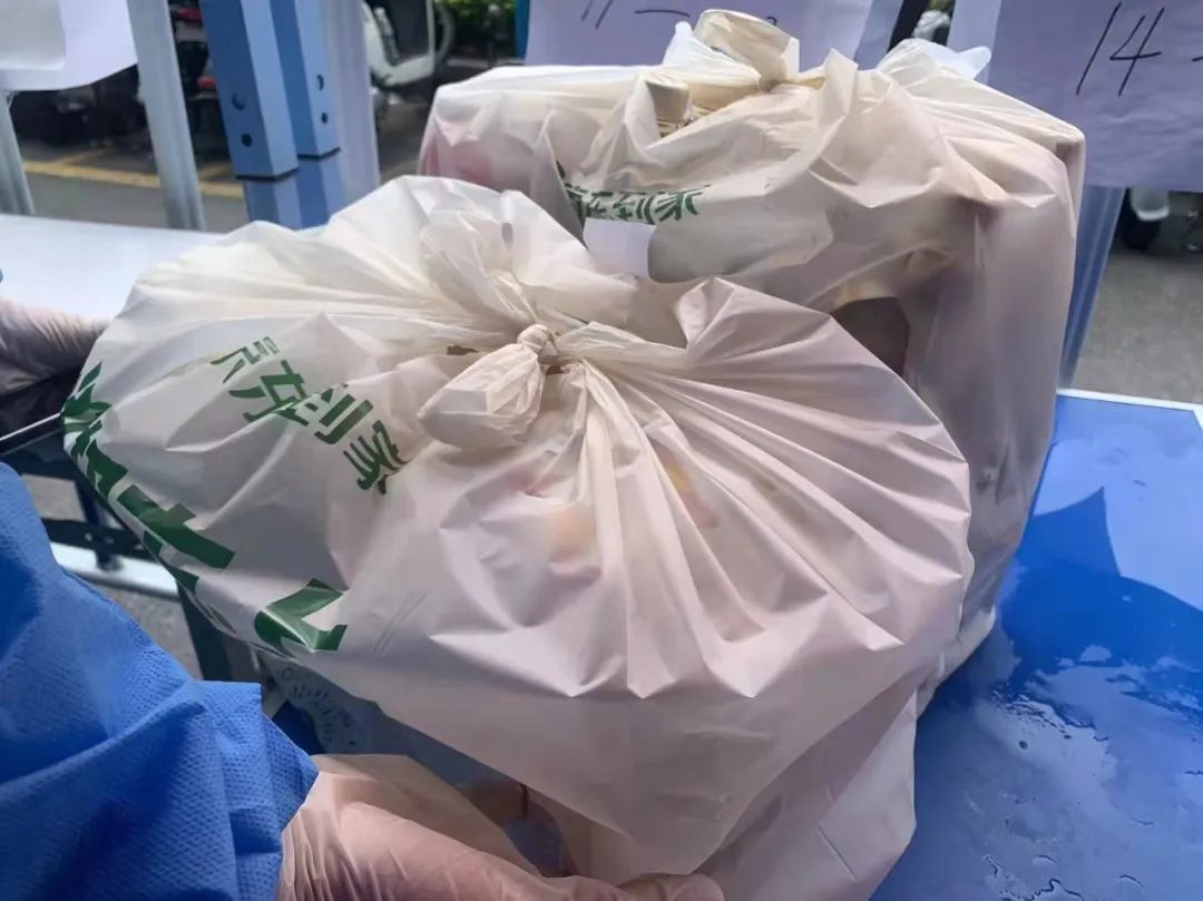 在確保嚴(yán)格落實(shí)小區(qū)防疫管控要求的同時(shí),海珠片區(qū)王倩總親自帶領(lǐng)海玥團(tuán)隊(duì)小伙伴奮戰(zhàn)前線,合力抗疫,給予各位業(yè)戶家人般的守護(hù)。全員出動,當(dāng)起了送貨上門的“分揀員”和“配送員”,分批負(fù)責(zé)1200+戶一日三餐的外賣配送和快遞、藥品代購代送和寵物照護(hù)等服務(wù)。這幾日氣溫高達(dá)30度,小伙伴們身著隔離服、戴著防護(hù)面罩、N95口罩和醫(yī)用手套,外賣分類裝手推車運(yùn)至大堂、按樓層單元號上門配送,不停來回奔走在樓棟與樓層之間,只有趁等電梯的時(shí)間稍作歇息,又繼續(xù)投入服務(wù)。甚至還有管家不惜瘸著痛風(fēng)的腿仍在運(yùn)送快遞,所有人的衣服都是濕透了干,干了又濕,卻依然堅(jiān)持奔走在工作崗位上。