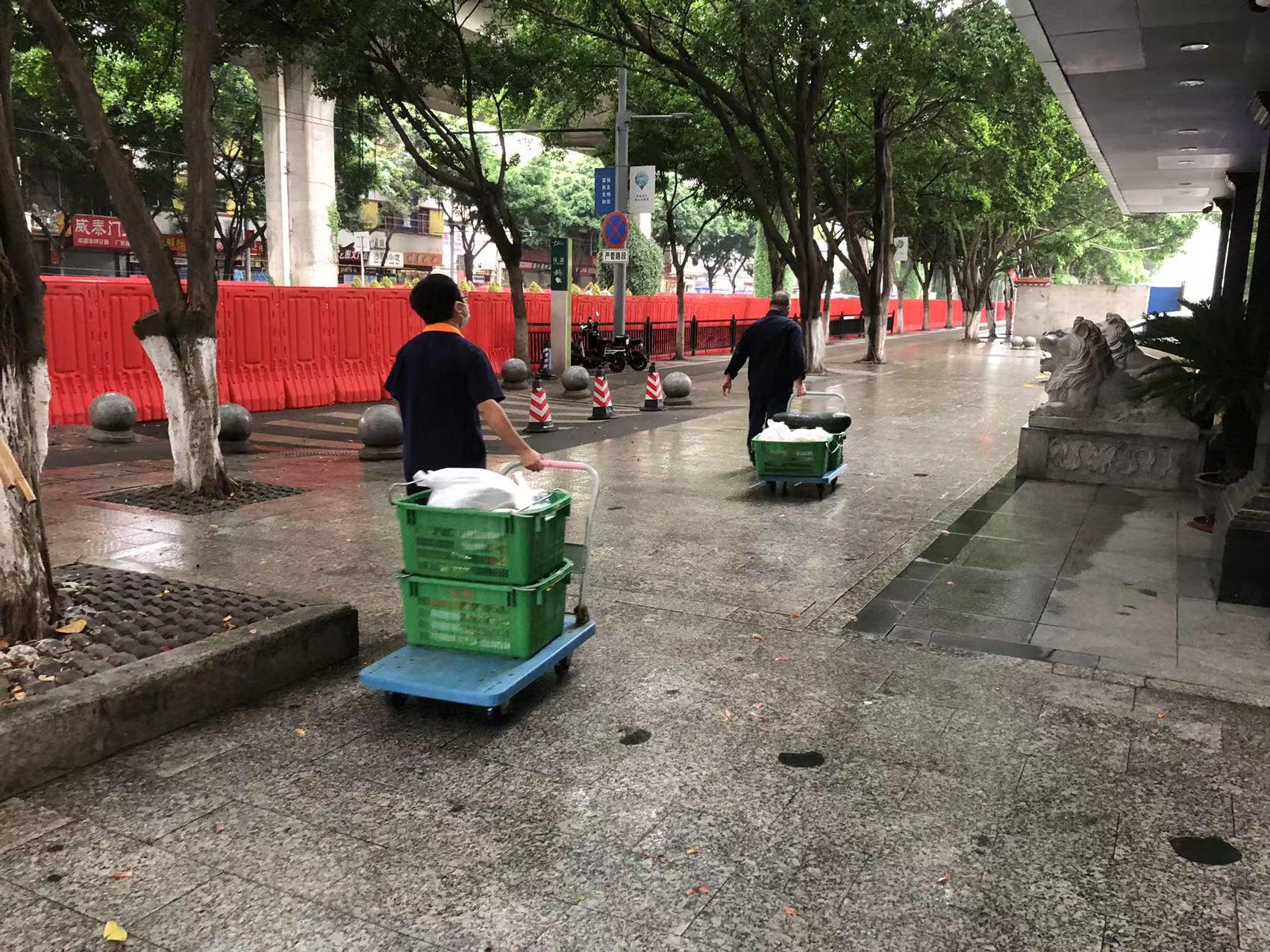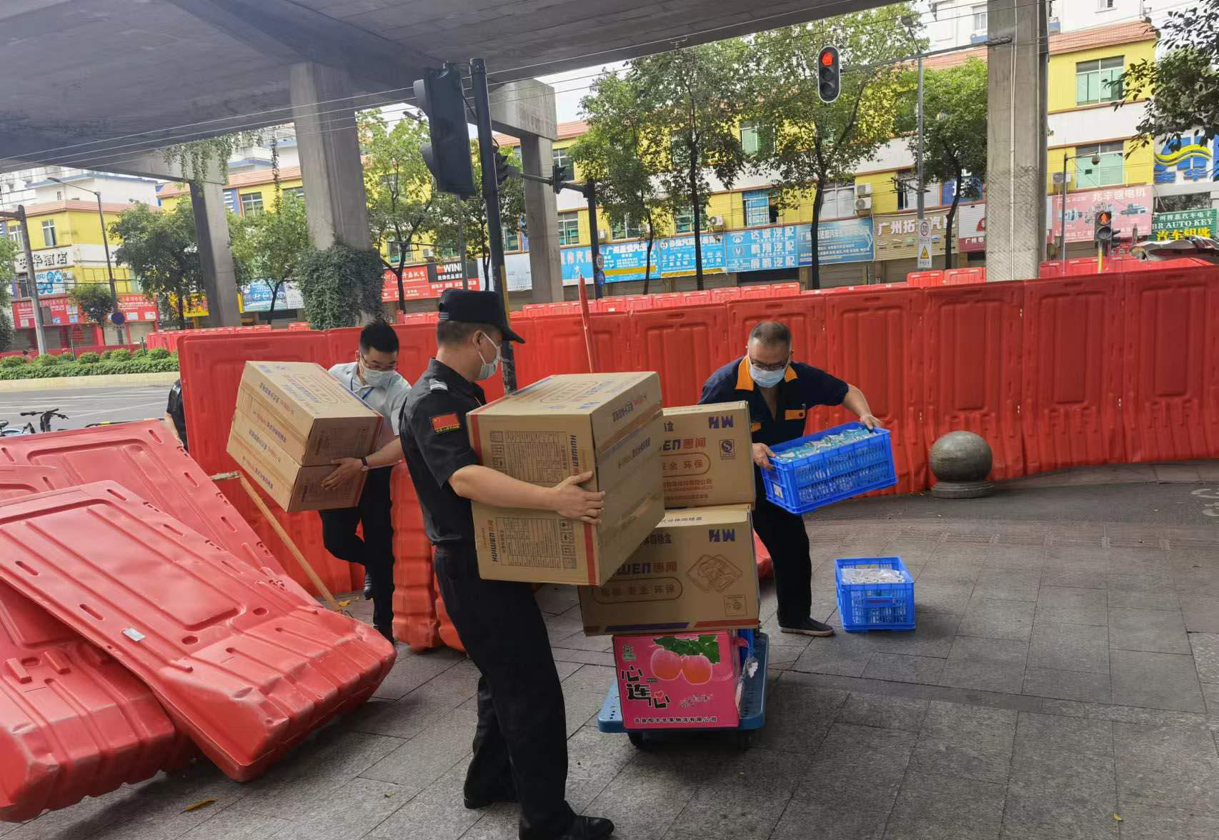 安保、工程人員搬運(yùn)生活物資