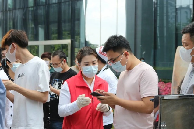 00后:“跟著大哥哥大姐姐一起沖!”作為企業(yè)的新鮮血液,他們?nèi)蝿谌卧?,不喊苦不喊累。在氣溫高達(dá)30度的戶外,用年輕人的朝氣與熱情,耐心解答市民的疑問、攙扶行動不便的老人,并協(xié)助不熟悉核酸檢驗碼操作和使用智能手機(jī)的居民或老年人完成核酸信息登記。