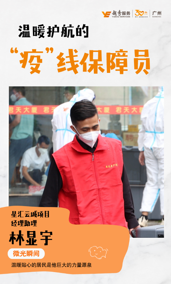 今年是林顯宇入職越秀物業(yè)的第2年,而這也注定是讓他印象深刻的一年。4月上旬,正值廣州白云區(qū)接連新增新冠肺炎確診病例,越秀服務(wù)“抗疫先鋒隊”緊急馳援白云區(qū)。在組織急需后勤保障力量的招募信息時,身為一名案場項目的管理骨干,林顯宇主動報名,肩負(fù)起600多名隊員吃、住、考勤、防疫物資調(diào)度和生活物資采購協(xié)調(diào)等后勤保障任務(wù)。