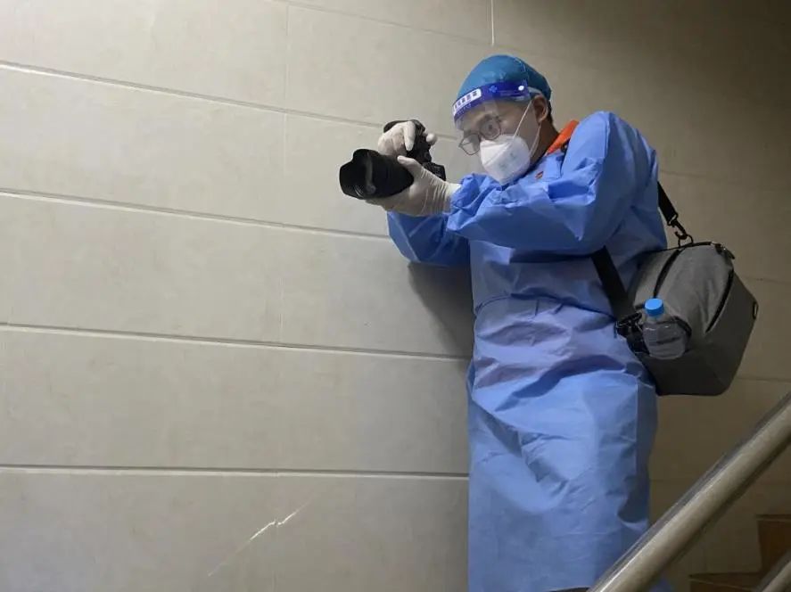 白天,宇俊穿梭在志愿者和疫區(qū)居民之間,隨時捕捉每一個珍貴的抗疫瞬間。因為深知“記者”的職責(zé),所以他對每一張照片都特別執(zhí)著,無論是光線、角度還是構(gòu)圖,都是他每次按下快門前所關(guān)注的要素。廣州的四月天很悶熱,戴著眼鏡的他,盡量放緩呼吸,不讓霧氣影響鏡頭對焦的畫面。每當(dāng)看到相機(jī)里好不容易抓拍到的精彩照片,他才終于露出滿意的笑容。深夜,當(dāng)隊員們帶著疲憊的身體漸入夢鄉(xiāng),宇俊才剛坐在電腦前,把當(dāng)天拍攝的素材逐一導(dǎo)入上傳,對志愿者們一天的辛勞進(jìn)行回顧和記錄。