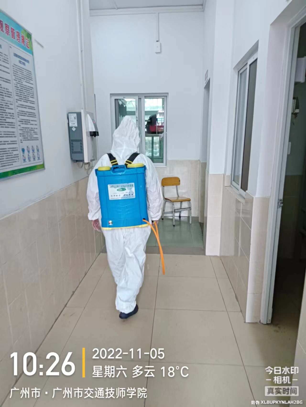 物業(yè)人員背著沉重的消殺設(shè)備
