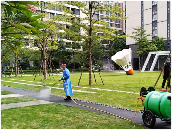 園區(qū)公共區(qū)域進(jìn)行全面消殺,以阻斷病毒傳播鏈。環(huán)境部同事對(duì)樓棟走廊、樓梯、衛(wèi)生間、小區(qū)廣場(chǎng)等公共區(qū)域的垃圾桶、電梯、門(mén)把手等進(jìn)行全方位、無(wú)死角的防疫消殺。隔離點(diǎn)的垃圾收集和處理與一般垃圾不太一樣,環(huán)境部同事要先拿著消毒物品,到各個(gè)樓層去收集、清理隔離人員的生活垃圾,統(tǒng)一打包放到樓下的清運(yùn)點(diǎn),再全部噴灑消毒。對(duì)風(fēng)險(xiǎn)垃圾實(shí)施“定人、定點(diǎn)、定車(chē)、定時(shí)、定線”的專(zhuān)項(xiàng)清運(yùn),減少中間轉(zhuǎn)運(yùn)環(huán)節(jié),避免交叉污染。
