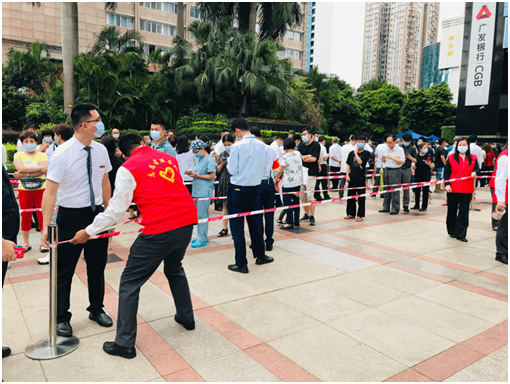 在第一時(shí)間了解到天河南街道設(shè)立核酸采樣點(diǎn)的需求后,城建大廈積極響應(yīng)出“戰(zhàn)”,及時(shí)主動(dòng)地與天河南街體育村居委多次溝通,在城建大廈南廣場(chǎng)設(shè)立核酸檢測(cè)臨時(shí)采樣點(diǎn)。