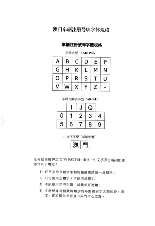 2.澳門車輛注冊號牌字體規(guī)格