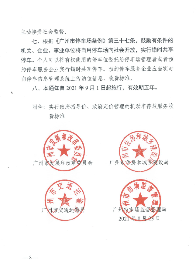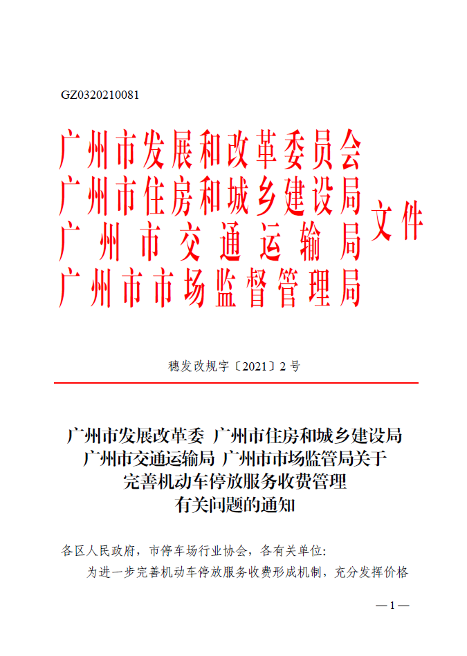 廣州市發(fā)展改革委廣州市住房和城鄉(xiāng)建設(shè)局廣州市交通運輸局廣州市市場監(jiān)管局關(guān)于完善機動車停放服務(wù)收費管理有關(guān)問題的通知(穗發(fā)改規(guī)字〔2021〕2號)